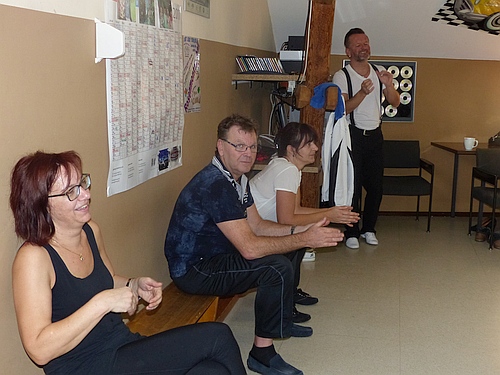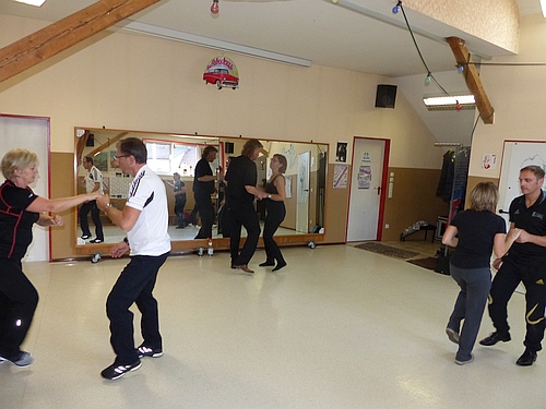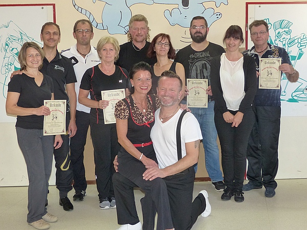 Nachdem Marion und Harry den erfolgreichen Kursteilnehmern Urkunden verliehen hatten, führten die beiden sowie Brigitte und Siegmar Rothbächer vor, was man beim Boogie-Woogie noch alles lernen kann, wenn man regelmäßig zum Training geht. Die meisten der Kursteilnehmer wollen auch weiterhin zum Tanzen kommen. Nach dem offiziellen Teil des Kursabschlusses gab es Sekt und ein leckeres Buffet, das Marion und Brigitte vorbereitet hatten. Die nächsten Trainingstermine der „Hot Legs“ sind HIER zu finden. |