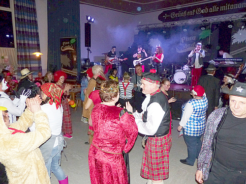 Die „Hot Legs“ organisierten den Rosenmontagsball. Harry Grzeschik, der Vorstand der „Hot Legs“, begrüßte im Aumeier-Saal die vielen Gäste und die Band „Pina Colada's“. Gekommen waren Joker, Pumuckls, Obelix persönlich, Chewbacca von Star-Wars, ein Eisbär, Hühner, Marienkäfer, Fledermäuse, Fliegen, Venezianerinnen, Mafiosi, elegante Damen mit ebensolchen Herren, ein Kapitän mit seinem ersten Offizier, Sheriff, Cowboys, Indianer, Chinesen, Clowns, ein Missions-Pater mit einer Kannibalin, Doktor „Helf-dir-gleich“ und ein Notarzt sowie noch einige andere Faschingsgestalten. Sogar ein Stern und der Engel Aloisius mit Harfe waren vom Himmel gefallen und feierten mit.