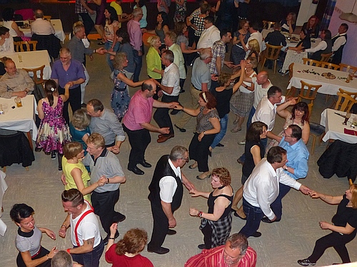 Die Tanzfläche war den ganzen Abend voll mit begeisterten Tänzern. Harry Grzeschik, der Vorstand der „Hot Legs“, begrüßte im voll besetzten Aumeier-Saal in Schierling besonders die vielen Stammgäste beim vierten Tanzabend mit den „Cagey Strings“. Diese heizten den Besuchern gehörig ein und machten nur ganz wenige Pausen. Mit Leidenschaft spielten sie sowohl Rock’n’Roll-Stücke als auch altbekannte Songs zu Standard-Rhythmen wie Discofox, Fox, Walzer, Cha-Cha-Cha oder Rumba. Natürlich durften zwischendurch ein paar Schmuselieder nicht fehlen und sogar Line-Dance-Stücke wurden gespielt. Die Musiker rockten den ganzen Abend alle Lieder auswendig und legten immer wieder akrobatische Showeinlagen hin, die die Besucher zu Beifallsstürmen hinrissen.